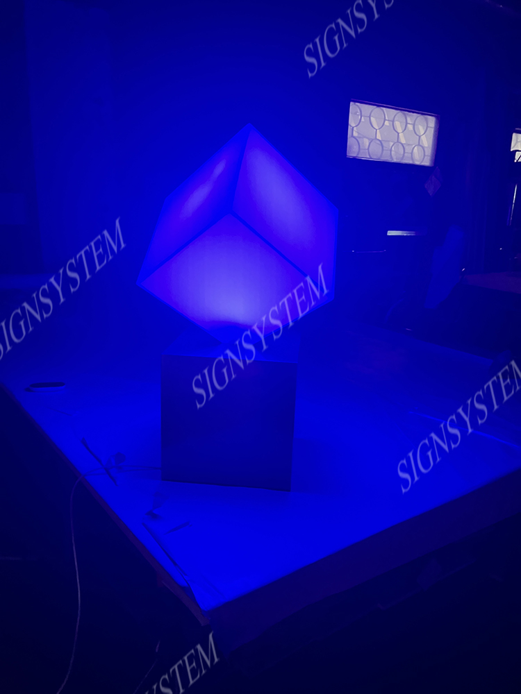 Рекламные кубы с подсветкой работают по принципу равномерного распределения света по всей поверхности конструкции. Технологии подсветки включают LED (наиболее популярный и энергоэффективный вариант), неон (для создания ярких, насыщенных цветов) и люминесцентные лампы (более традиционный подход). Для создания различных эффектов используются статичная подсветка, динамические режимы и RGB-контроллеры, позволяющие менять цвет свечения. Конструкция светящихся кубов состоит из прочного каркаса и светопропускающих панелей, изготовленных из материалов, таких как акрил или поликарбонат.