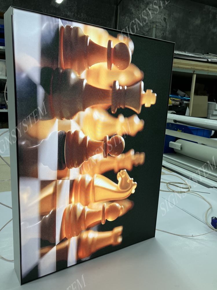 Текстильный лайтбокс с подсветкой легче (до 70% веса меньше), ткань меняется за минуты через карман или магниты, а акрил требует разборки. Ультратонкий текстильный лайтбокс не занимает места на стене, идеален для брендирования стен. В Москве мы производим оба типа — текстильный выгоднее для частой смены акций.